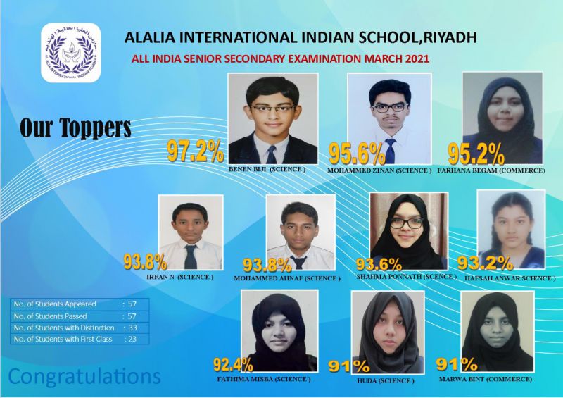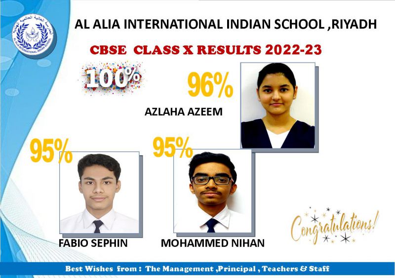 Al Alia International Indian School has scored 100% pass percentage in CBSE Class X 2017.